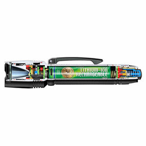 Inklusive leistungsstarkem ASP 18650-Akku, Batteriefach, einziehbarem Ladekabel und verstellbarem/abnehmbarem Taschenclip.