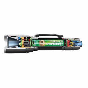 Inklusive leistungsstarkem ASP 18650-Akku, Akku-Aufbewahrungsetui, einziehbarem Ladekabel und verstellbarem/abnehmbarem Taschenclip.