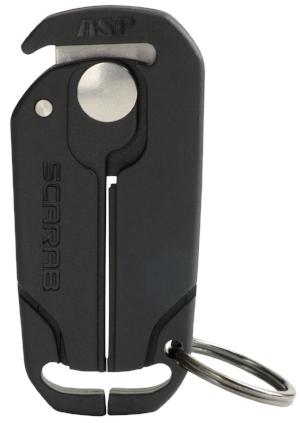 Der ASP Scarab Cutter ist ein kleiner, kompakter und leicht zu tragender Schneider, der die an einer festgenommenen Person angebrachten Kunststoffhandfessel wie beispielsweise den ASP Tri-Folds mühelos freischneidet, ohne die gefesselte Person dabei zu verletzten. Ein Ring zur bequemen Befestigung an einem Schlüsselbund oder einer Einsatztasche ist im Lieferumfang enthalten.